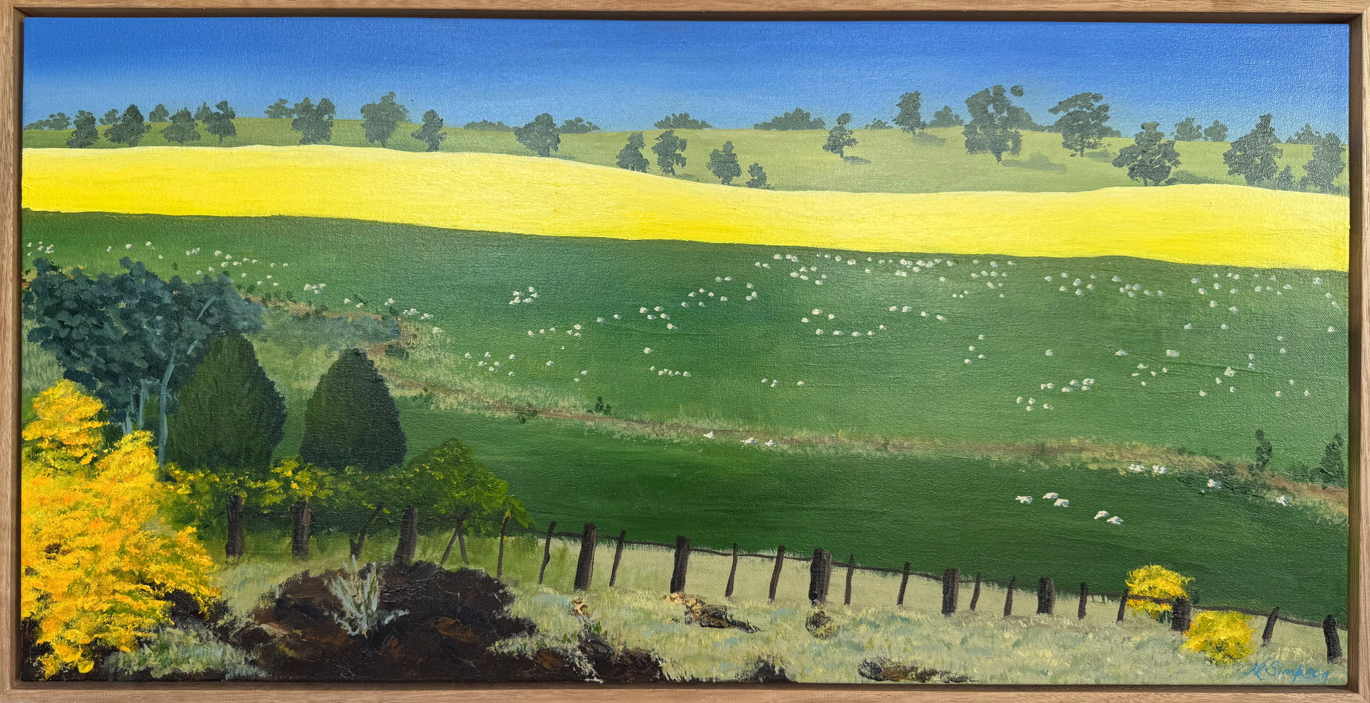 Rolling pastures glow with fresh flowering canola and spring lambs enjoying the sunlight. The air hums of life - springtime at its best.